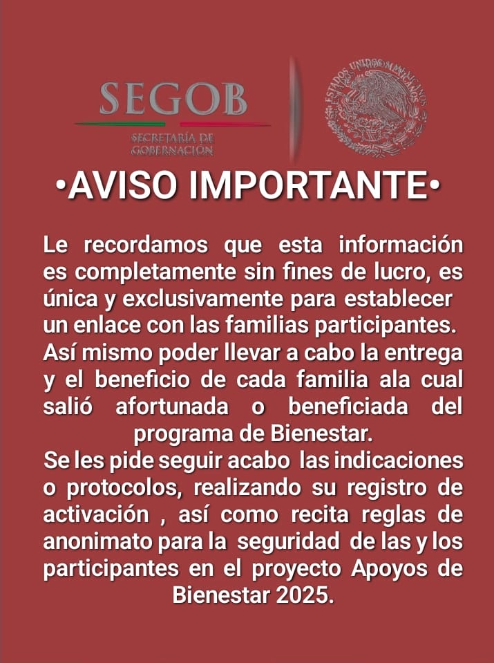 Secretaría de Gobernación dio inicio al programa el dia lunes 25 de agoston de 2025.
